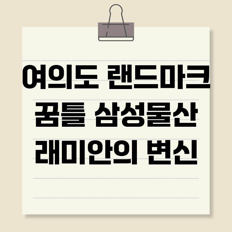 여러분은 래미안의 여의도 재건축 사업에 대해 어떻게 생각하시나요? 미래의 랜드마크는 어떤 모습이어야 할까요? 여러분의 의견을 댓글로 자유롭게 공유해주세요!