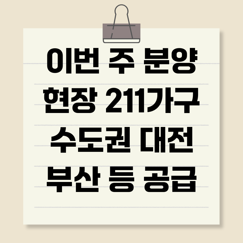 이번 주 분양은 수도권, 대전, 부산 등에서 진행됩니다. 각 지역별로 분양 시장의 특징과 투자 시 고려해야 할 사항은 다음과 같습니다.