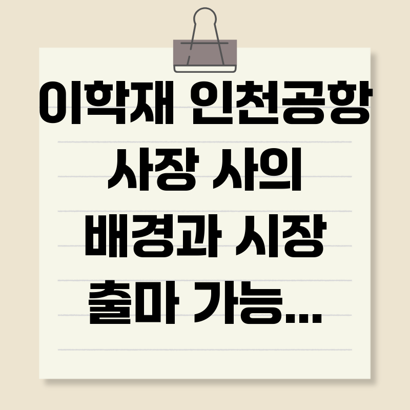 이학재 인천국제공항공사 사장의 갑작스러운 사의 표명은 단순한 사임 이상의 파장을 예고하고 있습니다. 그의 사의 배경에는 2024년 6월 지방선거, 특히 인천 시장 출마 가능성이 자리 잡고 있다는 분석이 지배적입니다. 과연 이학재 사장의 선택은 무엇을 의미하며, 인천 정치 지형에 어떤 변화를 가져올까요? 본 글에서는 이학재 사장의 사의 배경을 심층적으로 분석하고, 그의 정치적 셈법과 향후 전망을 면밀히 살펴보겠습니다.