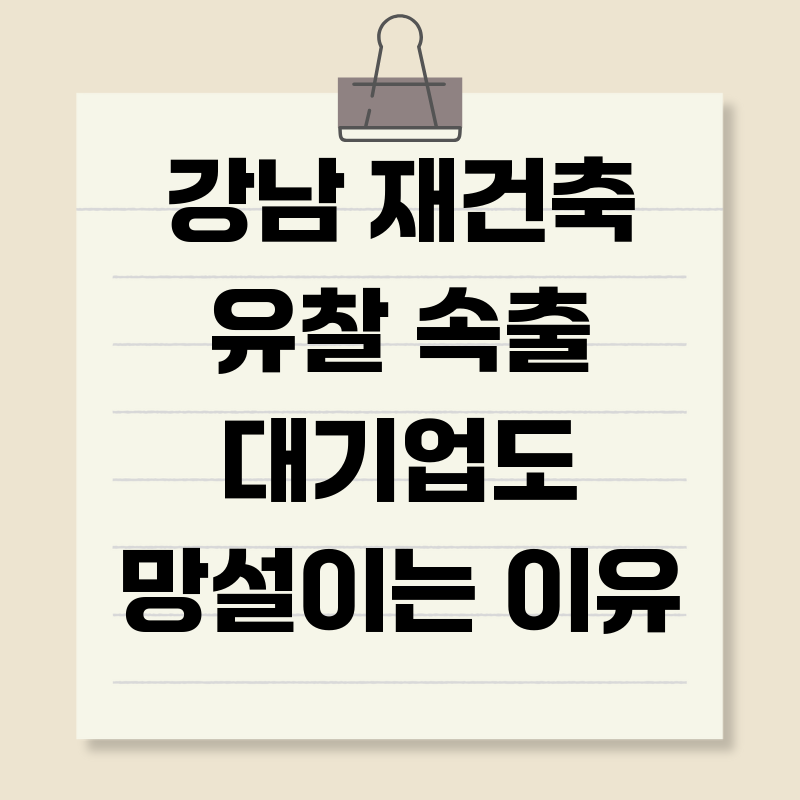 강남 재건축, 왜 대기업도 외면할까? 숨겨진 속사정 분석최근 강남 재건축 시장에 심상치 않은 기류가 흐르고 있습니다. 과거 '황금알을 낳는 거위'로 여겨졌던 강남 재건축 사업이 잇따라 유찰되며, 대형 건설사들조차 적극적인 참여를 망설이는 분위기가 감지되고 있습니다. 단순히 건설 경기 침체 때문일까요? 아니면 그 이면에 더 복잡하고 미묘한 이유들이 숨어 있는 걸까요? 본문에서는 강남 재건축 시장의 유찰 원인을 심층적으로 분석하고, 향후 전망과 투자 전략에 대한 인사이트를 제시하고자 합니다.1. 강남 재건축 시장, 잇따른 유찰의 늪한때 '로또'로 불리던 강남 재건축 사업들이 최근 잇따라 유찰되는 사례가 발생하고 있습니다. 사업비 증가, 고금리, 부동산 경기 침체 등 복합적인 요인이 작용한 결과로 풀이됩니다...