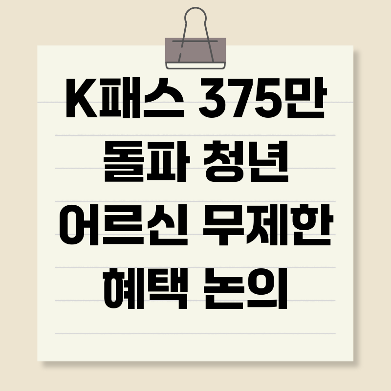 K패스 375만 돌파, 무제한 혜택 논의: 지속 가능한 대중교통 지원 해법은?K패스가 출시 1달 만에 가입자 375만 명을 돌파하며 대중교통 이용 활성화에 대한 높은 관심을 입증했습니다. 하지만 청년과 어르신을 위한 무제한 혜택 논의가 진행되면서, 일각에서는 지속가능성에 대한 우려의 목소리도 나오고 있습니다. 정부의 대중교통 지원 확대는 분명 긍정적이지만, 장기적인 관점에서 재정 부담을 줄이고 실질적인 혜택을 늘릴 수 있는 방안 모색이 필요한 시점입니다. 본 글에서는 K패스의 현황과 쟁점을 분석하고, 지속 가능한 대중교통 지원을 위한 정책 방향을 제시하고자 합니다.K패스, 성공적인 출발과 뜨거운 관심K패스는 월 15회 이상 대중교통을 이용하는 국민에게 교통비의 일정 비율을 환급해주는 제도로, 지난 5월 ..