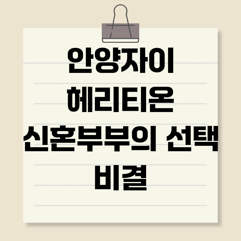 안양자이 헤리티온, 신혼부부 사로잡은 3가지 매력🔑최근 안양에서 분양한 "안양자이 헤리티온"이 신혼부부들에게 뜨거운 관심을 받고 있다는 소식입니다. 단순히 새 아파트라는 점을 넘어, 2030세대의 라이프스타일에 최적화된 요소들이 신혼부부들의 마음을 사로잡았다고 하는데요. 과연 어떤 매력이 숨어있는 걸까요? 본 글에서는 안양자이 헤리티온이 신혼부부들에게 어필하는 이유를 3가지 핵심 키워드를 중심으로 심층 분석하고, 향후 부동산 시장에 미칠 영향까지 전망해 보겠습니다.1. 교통, 학군, 인프라 삼박자를 갖춘 '완성형 입지'안양자이 헤리티온의 가장 큰 장점은 단연 뛰어난 입지 조건입니다. 지하철 1호선 명학역이 인접해 있어 서울 및 수도권 주요 지역으로의 접근성이 뛰어나며, 안양초, 안양여중, 안양고 등 명..