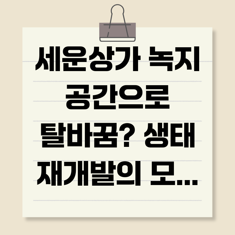 세운상가, 콘크리트에서 숲으로! 생태 재개발 집중 분석서울의 심장부에 위치한 세운상가. 한때 전자산업의 메카였지만, 시대의 변화와 함께 쇠퇴의 길을 걸어왔습니다. 하지만 최근, 획기적인 변화의 바람이 불고 있습니다. 바로 '녹지 생태'를 중심으로 한 재개발 프로젝트입니다. 단순한 건물 리모델링을 넘어, 도시 생태계를 복원하고 시민들에게 쾌적한 환경을 제공하겠다는 야심찬 계획입니다.콘크리트 정글 속에 숨겨진 가능성, 세운상가의 생태 재개발은 과연 성공할 수 있을까요? 이 글에서는 세운상가 재개발의 모든 것을 심층적으로 파헤쳐 보고, 그 의미와 과제를 짚어보겠습니다.세운상가, 과거의 영광과 현재의 쇠퇴세운상가는 1960년대 후반, 당시로서는 획기적인 주상복합 건물로 지어졌습니다. 종로에서 퇴계로까지 이어지는..