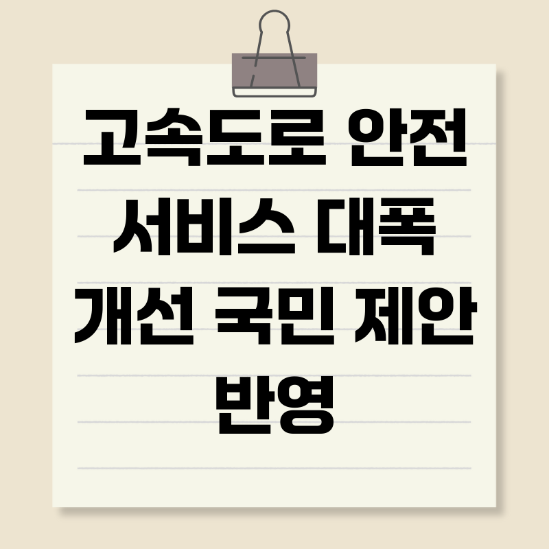 고속도로 안전 혁신: 국민 아이디어, 스마트한 변화를 이끌다고속도로를 이용하는 운전자라면 누구나 한 번쯤은 안전과 관련된 불편함을 느껴본 적 있을 겁니다. 잦은 사고, 갑작스러운 차량 고장, 혹은 예측 불가능한 교통 상황 등, 고속도로는 편리함과 동시에 늘 위험을 안고 있는 공간이기도 합니다. 최근 한국도로공사가 국민들의 생생한 목소리를 반영하여 고속도로 안전 서비스를 대폭 개선한다는 소식은 이러한 우려를 덜어줄 희소식입니다. 단순한 개선을 넘어, 국민들의 아이디어를 적극적으로 수렴하여 실질적인 변화를 이끌어낸다는 점에서 더욱 의미가 깊습니다.국민 제안, 안전한 고속도로를 디자인하다한국도로공사는 '국민이 제안하고 국민이 개선하는 고속도로'라는 슬로건 아래, 국민들의 아이디어를 적극적으로 수렴하여 고속도로..