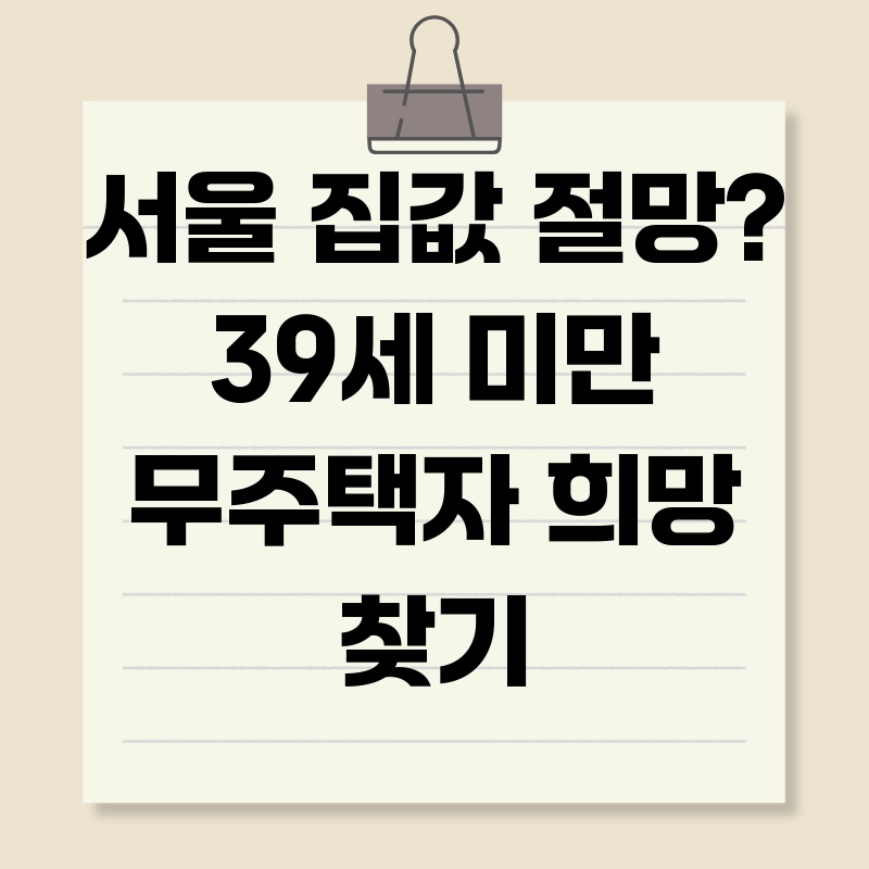 30대 서울 집값, 절망 아닌 희망? 현실적 해법 모색서울의 높은 집값 앞에서 30대 무주택자들은 흔히 '영끌'만이 답이라고 생각하거나, 아예 내 집 마련을 포기하는 경우가 많습니다. 하지만 정말 서울에서 내 집 마련은 불가능한 꿈일까요? 이 글에서는 39세 미만 서울 무주택자들이 현실적으로 희망을 찾을 수 있는 다양한 방안을 심층적으로 분석하고, 구체적인 사례와 데이터를 통해 실질적인 도움을 제공하고자 합니다.서울 집값 현황: 왜 30대가 절망하는가서울의 집값은 지난 몇 년간 급격하게 상승했으며, 특히 30대 초중반의 젊은 세대에게는 더욱 큰 부담으로 다가오고 있습니다. KB부동산 주택가격동향에 따르면, 서울 아파트 평균 매매가격은 2024년 5월 현재 12억 원을 넘어섰습니다. 이는 30대 평균 연봉..