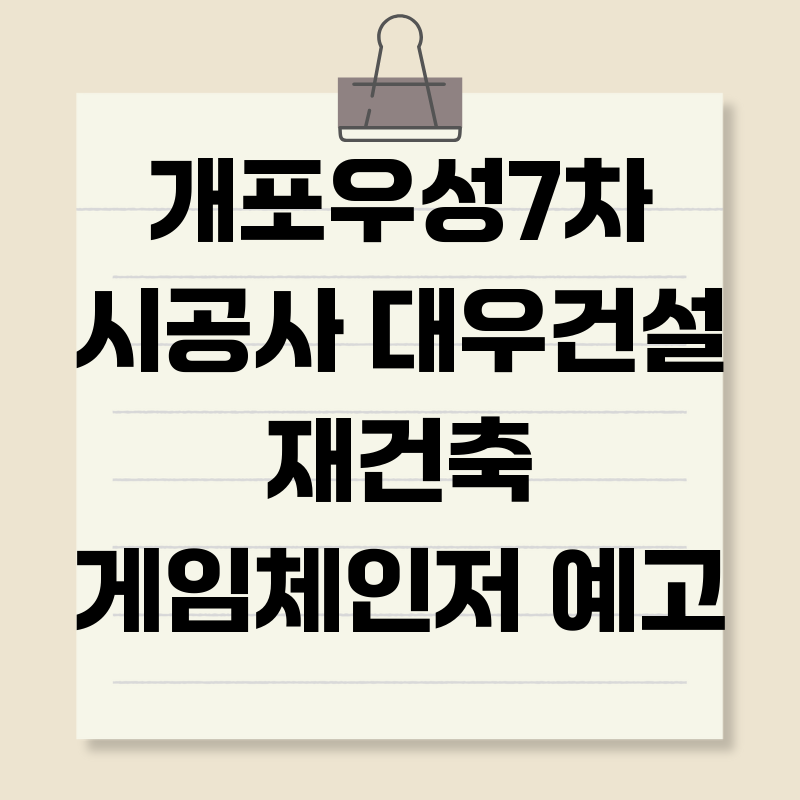 개포우성7차 시공사 대우건설 재건축 게임체인저 예고