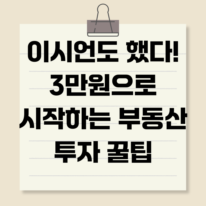 최근 배우 이시언 씨가 소액으로 부동산 투자를 시작했다는 소식이 화제가 되면서, '나도 한번 해볼까?' 하는 생각, 다들 한 번쯤 해보셨을 겁니다. 하지만 부동산 투자라고 하면 왠지 큰돈이 필요하고 복잡할 것 같다는 선입견 때문에 쉽게 도전하기 어려웠을 텐데요. 사실, 3만 원으로도 충분히 부동산 투자를 시작할 수 있다는 사실, 알고 계셨나요?