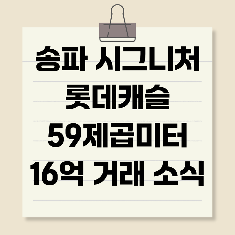 송파 롯데캐슬 59㎡ 16억 거래, 상승장 신호? 숨겨진 의미는?최근 송파 시그니처 롯데캐슬의 59제곱미터(이하 59㎡)가 16억 원에 거래되었다는 소식이 전해지면서 부동산 시장에 미묘한 파장을 일으키고 있습니다. 단순한 거래 사례일까요, 아니면 강남 부동산 시장의 회복을 알리는 조심스러운 신호탄일까요? 2024년 현재, 부동산 시장은 금리 인상, 경기 침체 우려 등 다양한 변수 속에서 방향을 잡지 못하고 있습니다. 이러한 상황에서 송파 롯데캐슬의 거래는 어떤 의미를 가지는지, 그리고 앞으로 부동산 시장에 어떤 영향을 미칠지 심층적으로 분석해 보겠습니다.송파 롯데캐슬 59㎡ 16억 거래, 시장 상황은?송파 시그니처 롯데캐슬은 2019년 입주한 랜드마크 단지로, 뛰어난 입지와 상품성으로 꾸준히 관심을 받아..