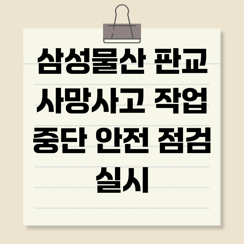 삼성물산 판교 사고, 멈춰선 건설 현장의 교훈최근 삼성물산 판교 건설 현장에서 발생한 안타까운 사망사고는 우리 사회에 큰 충격을 안겨주었습니다. 건설 현장의 안전 불감증은 어제오늘의 문제가 아니지만, 대형 건설사의 사고라는 점에서 더욱 뼈아픈 현실을 마주하게 합니다. 이번 사고를 계기로 건설 현장의 안전 관리 시스템을 근본적으로 재점검하고, 실질적인 변화를 이끌어내야 합니다.사고 발생과 작업 중단: 무엇이 문제였나?이번 사고는 삼성물산이 시공 중인 판교의 한 건설 현장에서 발생했습니다. 정확한 사고 원인은 현재 조사 중이지만, 작업 중 안전 수칙 미준수가 주요 원인으로 추정되고 있습니다. 사고 직후, 삼성물산은 즉각 해당 현장의 작업을 중단하고, 전반적인 안전 점검에 착수했습니다.물론 작업 중단과 안전 ..