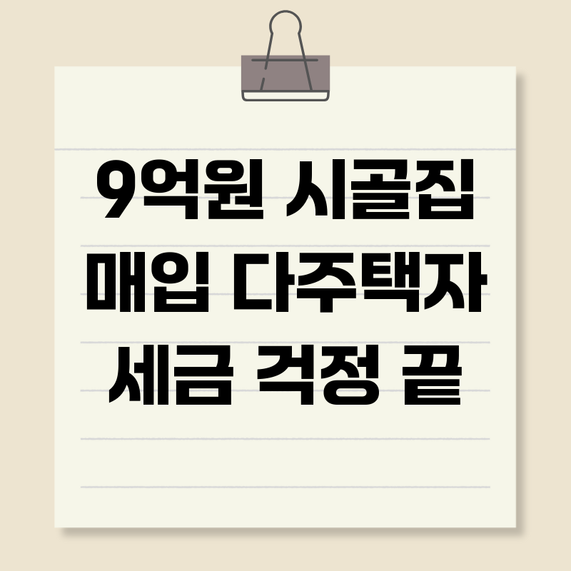 9억 시골집, 다주택자 세금 고민 해결? 절세 전략 분석최근 9억원 상당의 시골집을 매입하는 다주택자들이 늘면서 세금 부담에 대한 문의가 끊이지 않고 있습니다. 단순히 '고향에 돌아가 살고 싶다'는 로망을 넘어, 복잡한 부동산 규제 속에서 절세 방안을 찾으려는 움직임으로 해석됩니다. 과연 9억원 시골집 매입은 다주택자에게 '세금 폭탄'의 지름길일까요, 아니면 숨겨진 절세 카드가 될 수 있을까요?다주택자, 왜 시골집에 주목하는가?다주택자에게 적용되는 세금은 크게 양도소득세, 종합부동산세, 취득세 등이 있습니다. 특히 양도소득세는 조정대상지역 내 주택을 팔 때 기본세율에 더해 추가 세율이 붙고, 종합부동산세는 주택 수에 따라 세율과 세 부담 상한이 높아집니다. 이러한 상황에서 상대적으로 저평가된 시골집은 다..