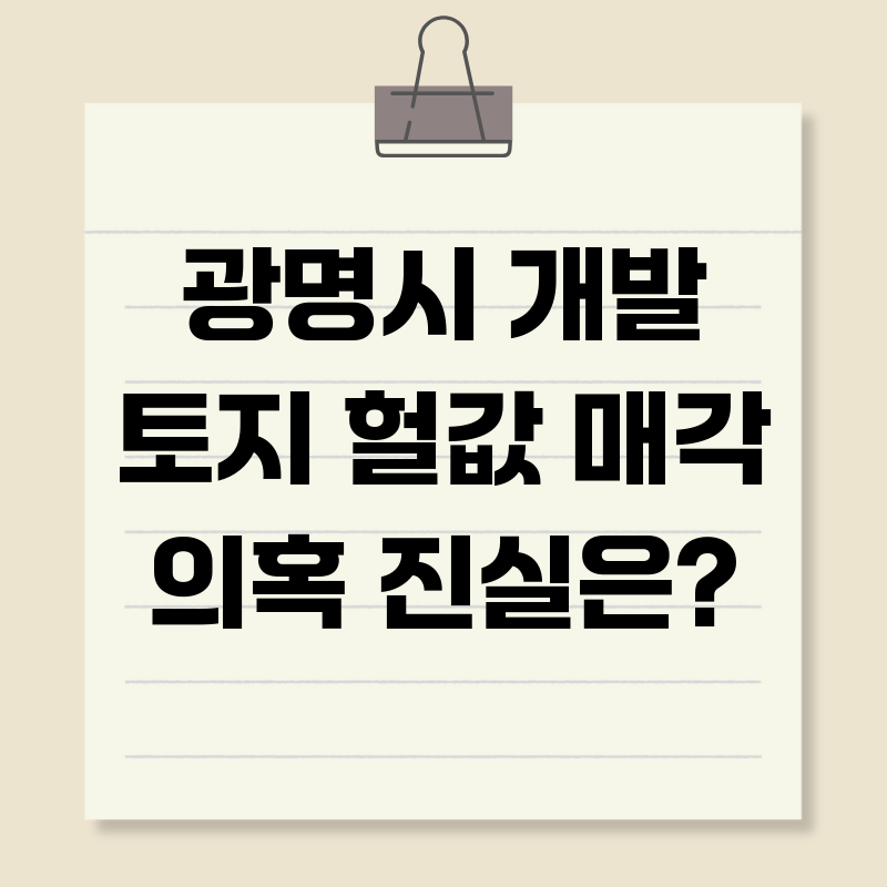 광명시 개발 토지 헐값 매각 논란, 숨겨진 진실은?최근 광명시에서 진행된 개발 토지 매각을 둘러싸고 헐값 매각 의혹이 불거지면서 논란이 확산되고 있습니다. 단순히 '싸게 팔았다'는 표면적인 사실 너머에는 복잡한 이해관계와 도시 개발의 방향성이 얽혀 있을 가능성이 높습니다. 이번 논란을 통해 우리는 부동산 시장의 투명성, 공공자산 관리의 중요성, 그리고 도시 개발 과정에서의 시민 참여 필요성을 다시 한번 생각해봐야 합니다. 과연 광명시의 토지 매각은 정말 헐값에 이루어진 것일까요? 만약 그렇다면 그 이유는 무엇이며, 우리에게는 어떤 영향을 미칠까요? 지금부터 헐값 매각 논란의 진실을 파헤쳐 보고, 그 이면에 숨겨진 의미를 분석해 보겠습니다.논란의 중심: 광명시 개발 토지 헐값 매각 의혹광명시 개발 토지 헐..